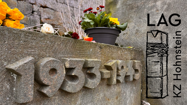 Gedenkveranstaltung der LAG KZ Hohnstein, mit Ausstellung biografischer Porträts von Menschen, die im KZ Hohnstein inhaftiert waren: Samstag, 14. März 2026, 11 Uhr am Denkmal auf dem Marktplatz Hohnstein.