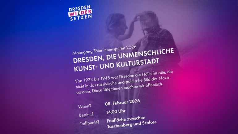 Der Mahngang 2026 trägt den Titel „Dresden, die unmenschliche Kunst- und Kulturstadt“ und greift damit kritisch den lange wirkmächtigen Mythos der „unschuldigen“ Stadt auf. Im Jahr der jüdischen Kultur richtet der Mahngang den Fokus bewusst auf zentrale Werte jüdischer Traditionen wie Solidarität und Humanismus. Diese Perspektive bildet den Rahmen für eine Auseinandersetzung, die Täter*innenhandeln sichtbar macht und zugleich die Verantwortung gegenüber allen vom Nationalsozialismus Verfolgten in den Blick nimmt.
