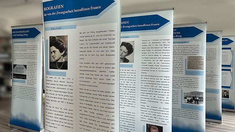 2025 hat die Peniger Initiative Gesicht zeigen – Netzwerk für demokratisches Handeln auf der Grundlage zahlreicher Quellen eine umfangreiche Wanderausstellung über die Entstehung des Lagers, die Lebens- und Arbeitsbedingungen der hier Inhaftierten sowie über das Ende dieses Ortes nationalsozialistischer Verbrechen erarbeitet. Darüber hinaus porträtieren einige der Ausstellungstafeln ausgewählte Gesamtbiografien mehrerer ehemaliger Zwangsarbeiterinnen und thematisieren zudem die vielfältigen Formen der Gedenkarbeit der Initiative, mit der sie die Erinnerung an die betroffenen Frauen wachhält.