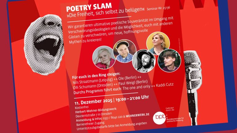 Ein Poetry Slam mit Garantie auf ultimative poetische Souveränität im Umgang mit Verschwörungsideologien.