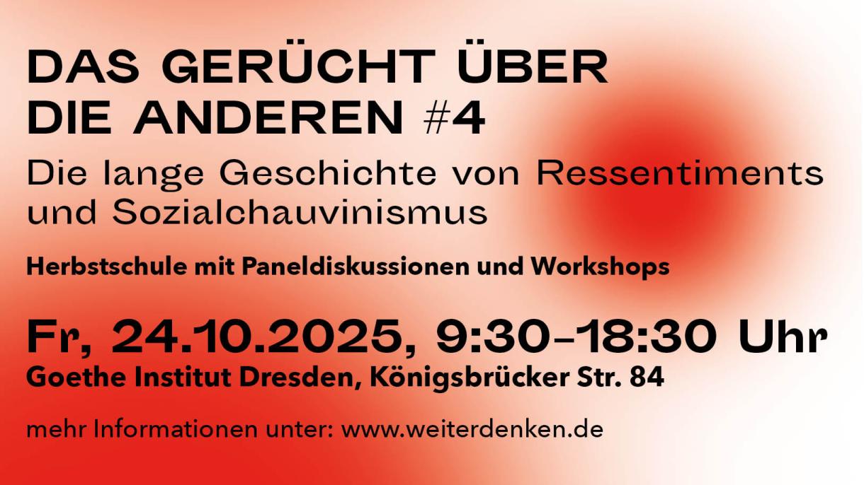 Das Gerücht über die Anderen #4 – Die lange Geschichte von Ressentiments und Sozialchauvinismus, Herbstschule mit Paneldiskussionen und Workshops zu Gerechtigkeit, Widerständen und Organisierung im Kontext von Kapitalismus, Antisemitismus und Antiromaismus/Antiziganismus