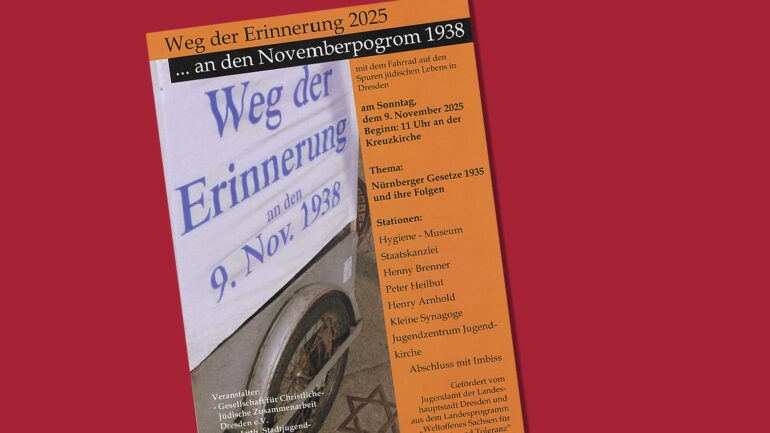 Im Gedenken an die November-Pogrome vor 87 Jahren werden Orte aufgesucht, die mit jüdischem Leben und der Verfolgung in Dresden zusammenhängen.