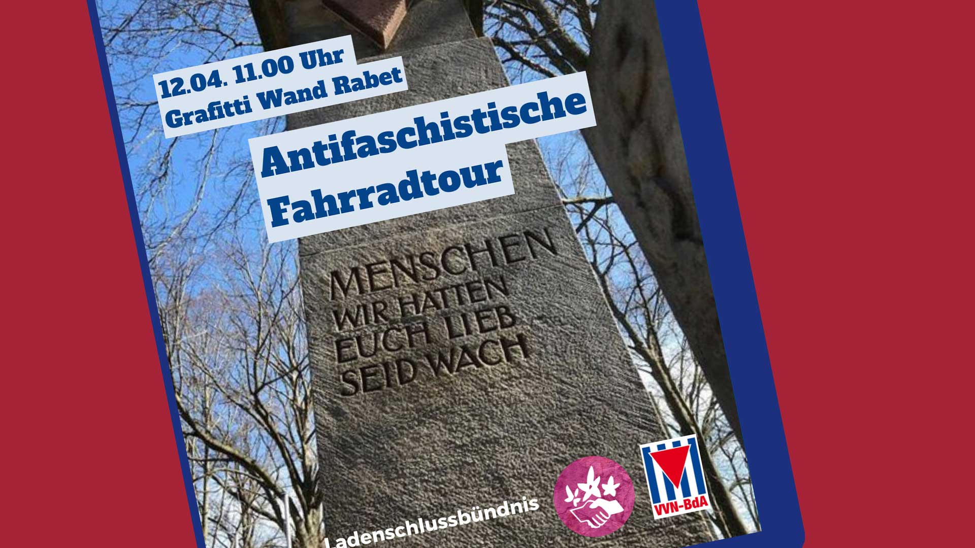 Ab dem 13. April 1945 begannen auch die Todesmärsche aus den KZ-Außenlagern im Großraum Leipzig Richtung Osten. Die Fahrradtour führt über mehrere Stationen u.a zum ehemaligen Standort des größten Leipziger Außenlagers von Buchenwald in der heutigen Kamenzer Straße. Anschließend fahren wir nach Lindenthal, wo ab 14:30 Uhr gemeinsam am „Denkmal der 53″ den dort Ermordeten gedacht werden soll.