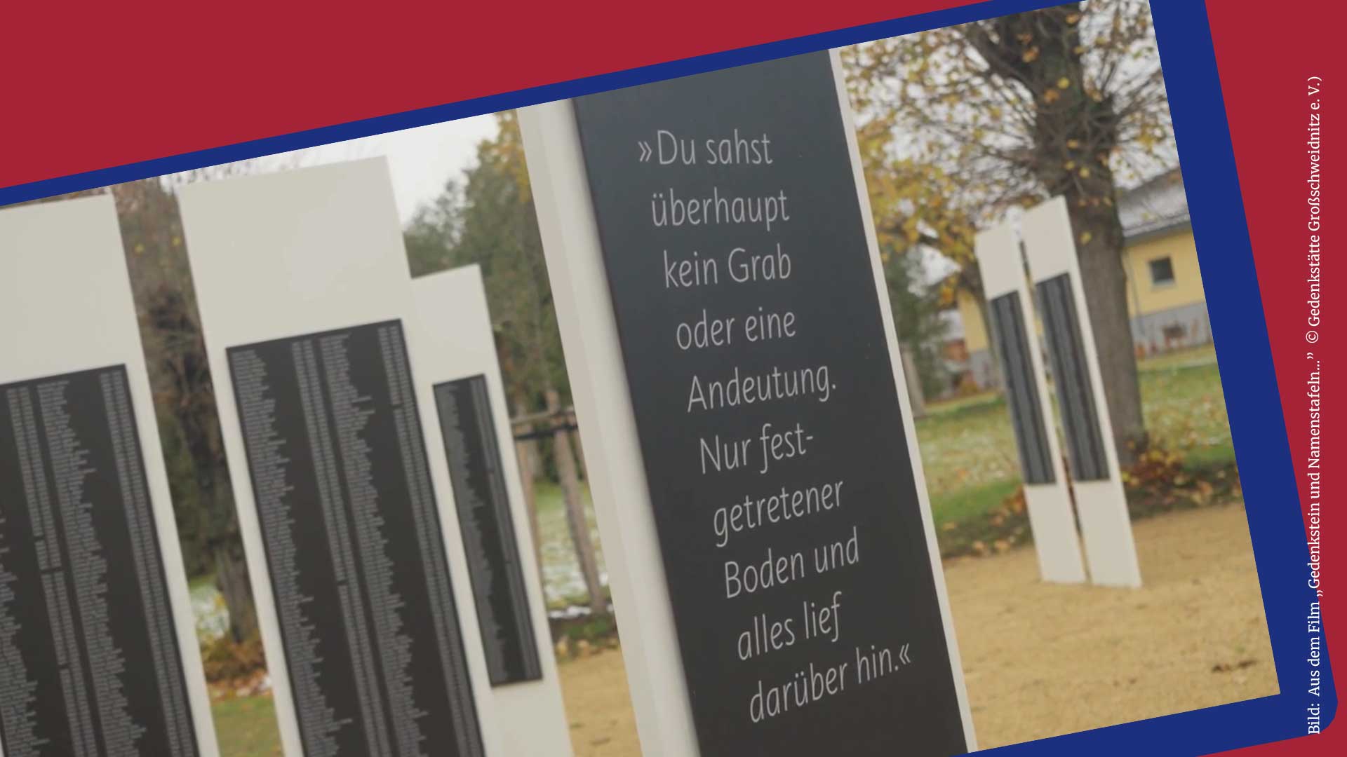 Nur durch einen Zufall haben sich auf dem Anstaltsfriedhof Großschweidnitz 132 Grabsteine von Menschen erhalten, die dort zwischen 1939 und 1945 den nationalsozialistischen Krankenmorden zum Opfer fielen. Die schlichten Betonsteine sind einmalige Zeugnisse des Lebens und Leidens dieser Menschen. Gleichzeitig erzählen sie auch vom Bemühen der Verantwortlichen, ihre Verbrechen zu vertuschen.
