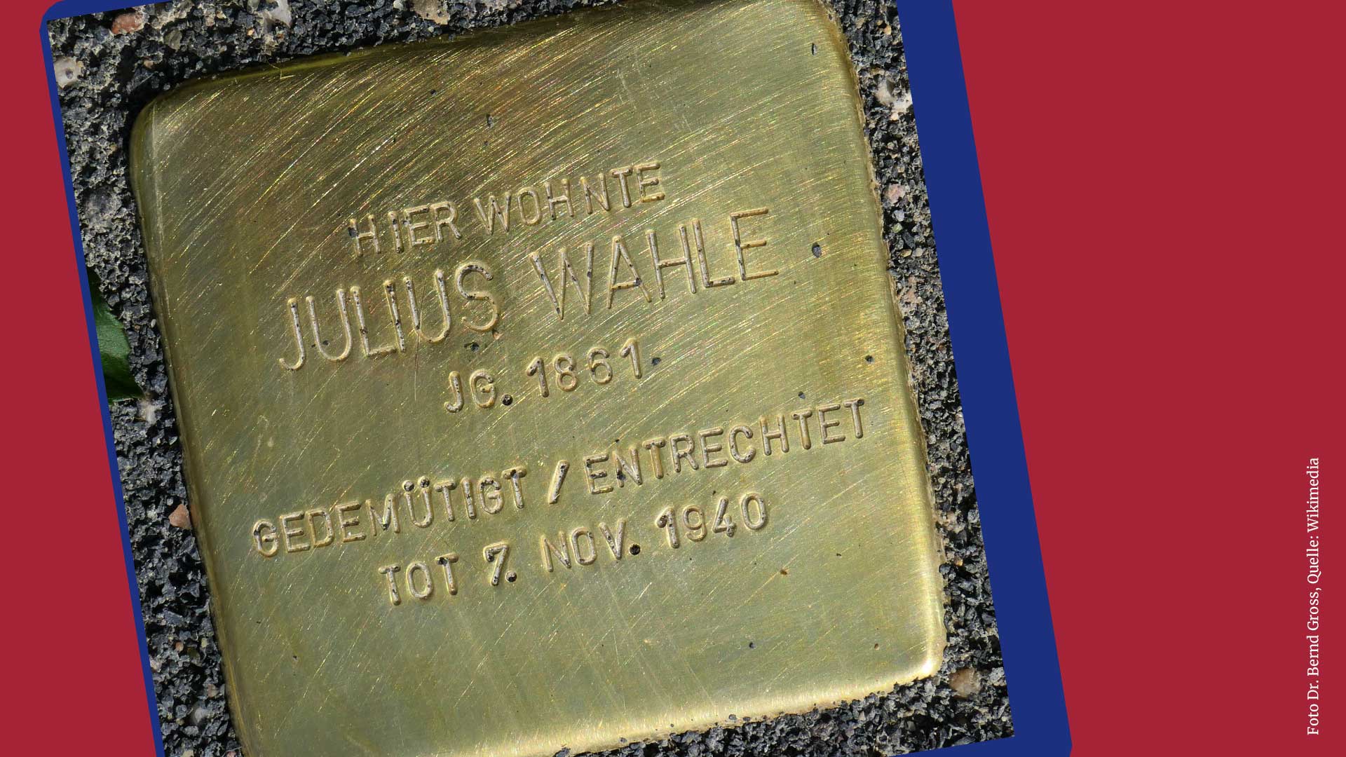 Ein dunkler Grabstein auf dem Neuen Israelitischen Friedhof erinnert an Julius Wahle. Selbstbewusst steht darauf: „VORMALS DIREKTOR DES GOETHE-U. SCHILLER- ARCHIVS IN WEIMAR“. Diese Inschrift ist von besonderer Brisanz, denn zum Zeitpunkt seines Todes 1940 sollte die Erinnerung an das Wirken eines bekennenden Juden für die deutsche Klassik ausgelöscht werden.